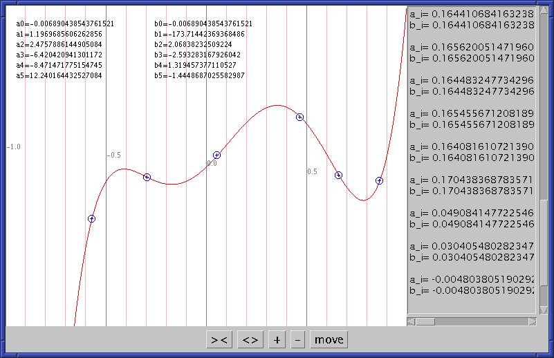 Zu diesem Zweck habe ich ein kleines Programm in Java geschrieben, mit dem man sich ein Polynom interaktiv am Bildschirm zusammenbasteln kann.
